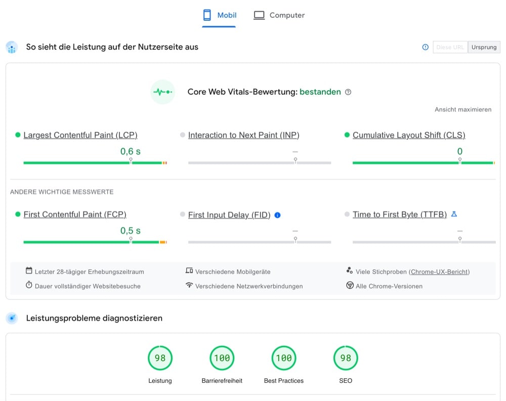 Abb. 7: Screenshot: Analyse einer Webseite (Quelle: PageSpeed Insights. pagespeed.web.dev/analysis/https-www-praxis-czaeczine-de-leistungen-html/qgub42xv74?hl=de&form_factor=mobile. Zugegriffen: 10.04.2024)